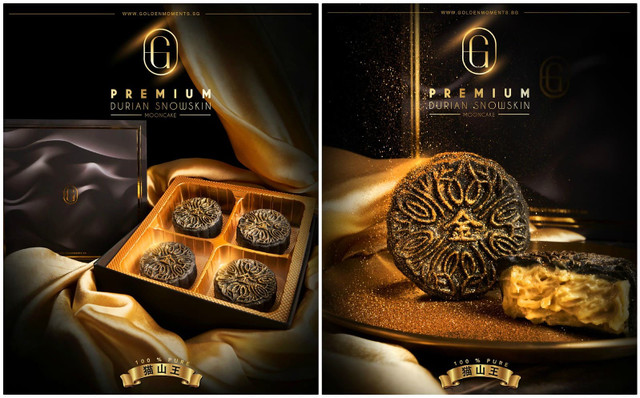 Cửa hàng bánh kẹo sầu riêng Golden Moments của Singapore đã gây chú ý lớn với hộp bánh trung thu trị giá 655 USD (gần 16 triệu VND). Bánh có tới 5 lớp vàng lá 24K có nhãn hiệu 99,9 24K Pure Gold Bar do SK Jewellery thiết kế. 24K Truffle Mao Shan Wang Snowskin là một loại bánh trung thu sầu riêng truffle kết hợp hai thành phần đậm đà.