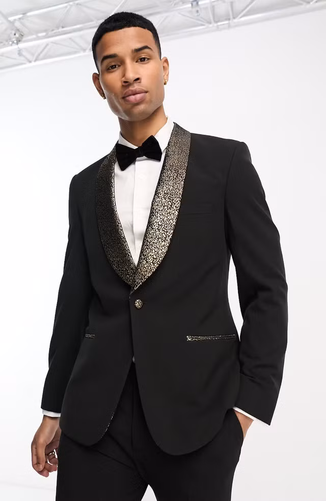 Chất liệu kim loại mang đến một sự thay thế hấp dẫn cho những ai muốn tạo sự sang trọng cho trang phục của mình. Một bộ tuxedo màu đen có điểm nhấn bằng vàng có thể thu hút sự chú ý tại bất kỳ buổi tụ tập trang trọng nào trong dịp lễ, trong khi khuy măng sét và thanh cà vạt màu bạc mang đến sự khởi sắc tinh tế nhưng đầy ấn tượng.