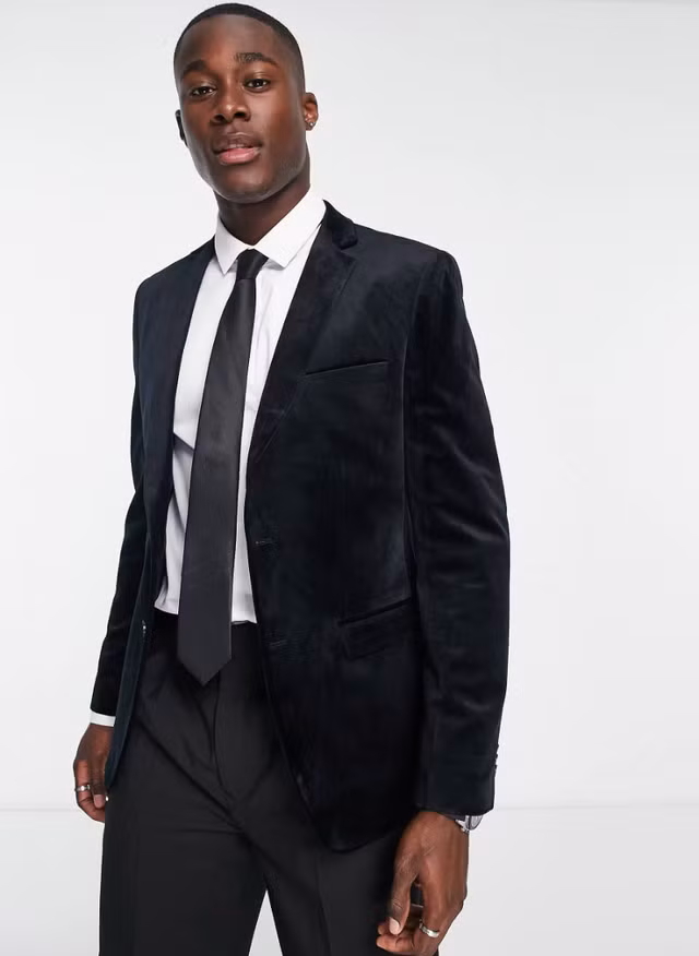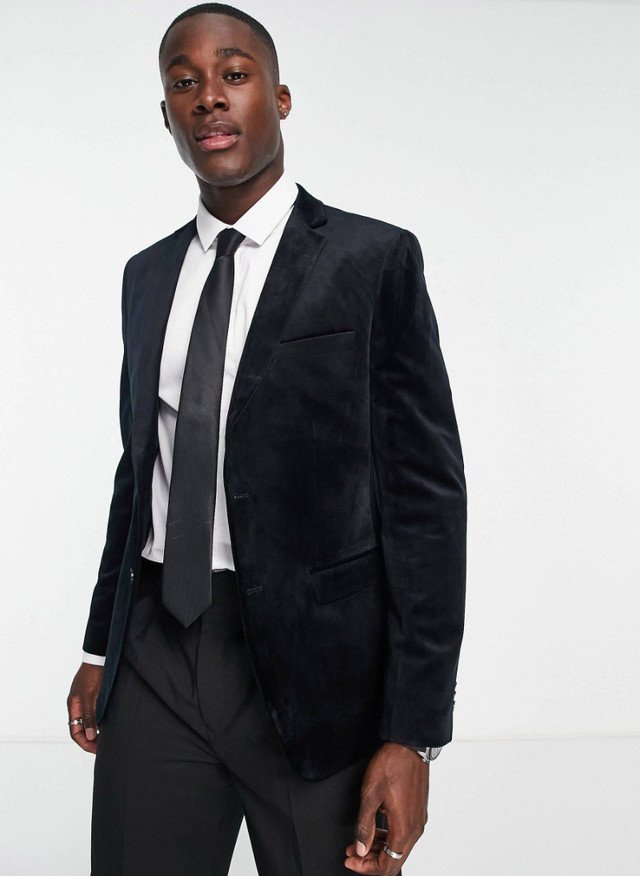 Để có một buổi hẹn hò ăn tối Giáng sinh thân mật, bạn đang muốn nắm bắt sự kỳ diệu của buổi tối mà không cần quá chú trọng đến trang phục quá lố. Một chiếc blazer nhung đen toát lên sự lãng mạn và sang trọng vừa phải, đặc biệt là với áo sơ mi sáng màu.