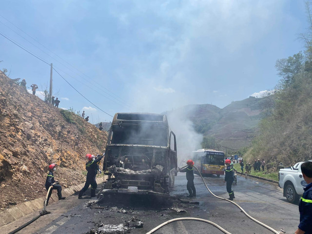 Khi đi đến Km258+390 thuộc khu vực đèo Chiềng Đông, huyện Mai Sơn (Sơn La), chiếc xe bất ngờ bốc cháy dữ dội. Rất may, tài xế trên xe kịp thời thoát ra ngoài trước khi ngọn lửa bùng lên.