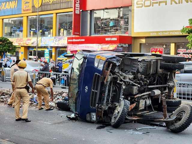 “Sau tiếng va chạm lớn, tôi điếng người khi phát hiện xe tải lật đè cô gái đi xe máy. Thời điểm đó, người lưu thông trên đường rất đông, ai cũng hốt hoảng, có người gào khóc. Nạn nhân được giải cứu ra ngoài trong tình trạng bất tỉnh”, nam nhân chứng tên Hoàng kể.