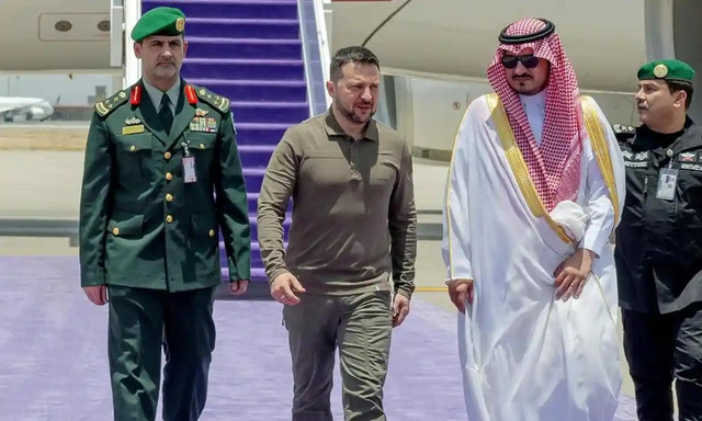 Đây là lần đầu tiên ông Zelensky có chuyến thăm châu Á, kể từ khi xung đột ở Ukraine nổ ra. Một số quan chức Ả Rập Saudi đã tới sân bay đón nhà lãnh đạo Ukraine.
