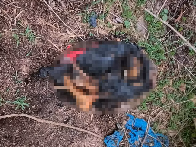 Trước đó, khoảng 18h cùng ngày, người dân phát hiện tại một bãi đất trống thuộc khu phố Khánh Lộc (phường Tân Phước Khánh, TP Tân Uyên) có một vật thể lạ màu đen. Khi đến kiểm tra thì tá hỏa phát hiện một đôi chân giống chân người đã bị đốt cháy.
