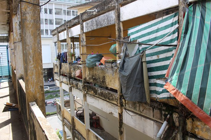 Các căn hộ xuống cấp trầm trọng, khiến nhiều mảng trần rơi ra chỉ còn lại lõi sắt.