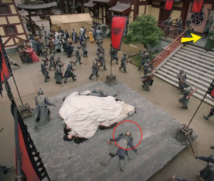 Cũng trong Cẩm Tú Nam Ca, trong cảnh phủ bị tấn công, vốn có những người hầu dùng gậy chắn cửa, không cho quân địch vào. Tuy nhiên, sau đó, những cây gậy đột nhiên biến mất như có người di chuyển.
