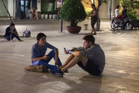 Quan sát, vào thời điểm này, nhiều nhóm bạn trẻ vẫn còn ngồi tụm lại rất đông tại khu vực đài phun nước. Họ ăn uống, đàn hát vui vẻ. Một số khác thì tranh thủ tạo dáng, chụp ảnh lúc nửa đêm. Vài người tranh thủ chơi thể thao, chạy bộ. Tại khu vực nhà vệ sinh và trạm chờ xe buýt, nhiều đôi tình nhân ngồi lại tâm sự cùng nhau.