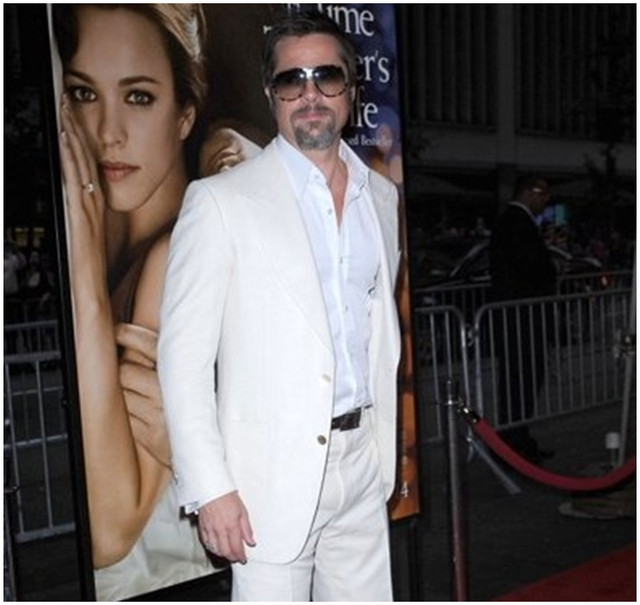Nếu bạn muốn nổi bật nơi đông người, trở thành một quý ông lịch lãm và sang chảnh thì hãy học tập ngay cách mix đồ này của nam tài tử. Brad Pitt mặc áo sơ mi trắng cùng với một bộ vest sáng màu và một chiếc thắt lưng bản nhỏ. Ngoài ra, ngôi sao này còn sử dụng chiếc kính sành điệu.