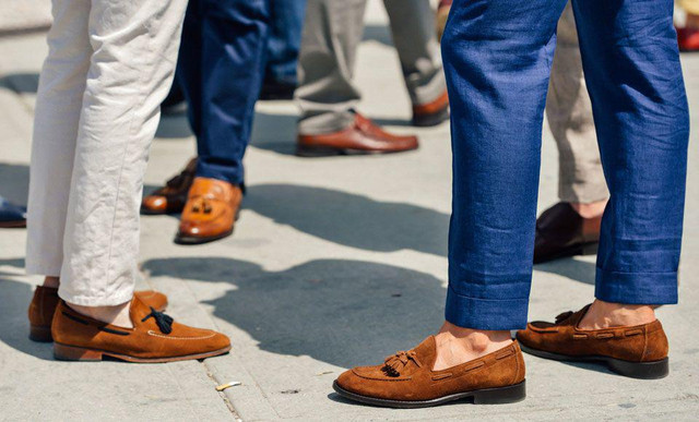 Giày đế xuồng và giày lười mang lại sự thoải mái. Thật khó để trông xấu khi đi một đôi và bạn sẽ không bị phồng rộp chân trong quá trình này. Chúng hoạt động tốt với một bộ vest cũng như với quần chinos vào mùa hè. Thường không đi tất và luôn được làm bằng da bê cao cấp.