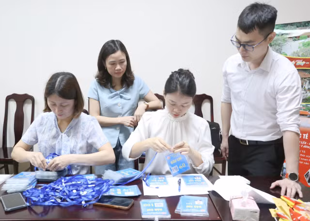 Ban tổ chức Trung tâm Báo chí thực hiện quy trình cấp phát thẻ tác nghiệp.