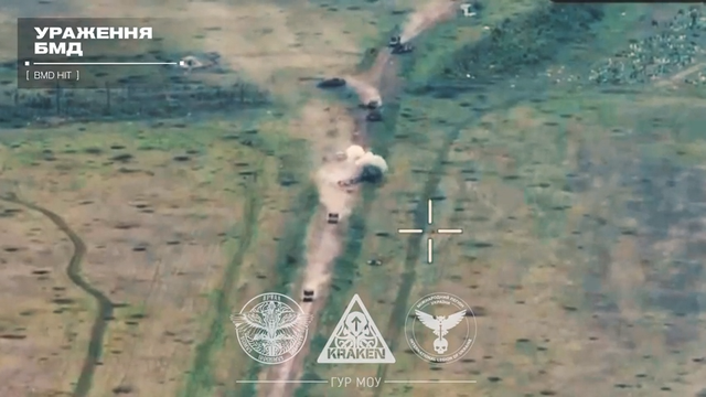 Cuối video, lữ đoàn đặc nhiệm Ukraine nói sử dụng UAV tự sát góc nhìn thứ nhất (FPV) để truy quét bộ binh Nga rời khỏi xe bọc thép.