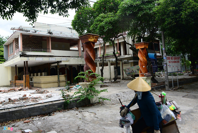 Hiện khu đất rộng cả nghìn m2 này đang bỏ hoang. Một vài căn nhà bị đập bỏ, khuôn viên đổ nát là vết tích của một khu nhà hàng vừa chuyển đi nơi khác.