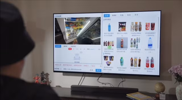 Ông Zhang kiểm soát máy bán hàng, ra lệnh để chó robot giao đồ ăn đặt trên mạng.