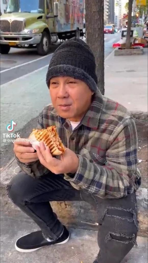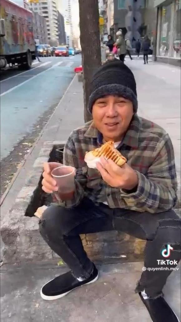 Ít giờ trước, trên kênh TikTok của mình, MC Quyền Linh đã đăng tải đoạn clip ngồi ăn bánh mì trên đường phố, kèm dòng caption: "New York mùa đông hihi". Nam MC ăn diện trang phục rất giản dị với áo sơ mi chất liệu dạ, phối cùng với quần jean tối màu. Bên cạnh đó, để giữ ấm cho cơ thể khi ở Mỹ giữa mùa đông giá lạnh, Quyền Linh đã đội thêm mũ len và giày thể thao.