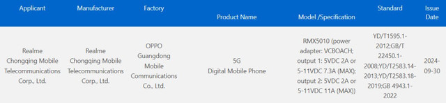 Vào tháng 9, nền tảng chứng nhận thiết bị vô tuyến tại Trung Quốc đã phê duyệt một mẫu điện thoại Realme sắp ra mắt với mã model RMX5010. Mã máy này cũng vừa nhận được chứng nhận từ cơ quan quản lý 3C của Trung Quốc. Nhiều khả năng, RMX5010 chính là mã model của Realme GT 7 Pro.