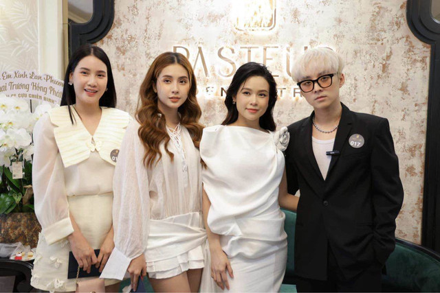 Sam và ông xã chụp hình cùng bác sĩ Thịnh (ngoài cùng bên trái)