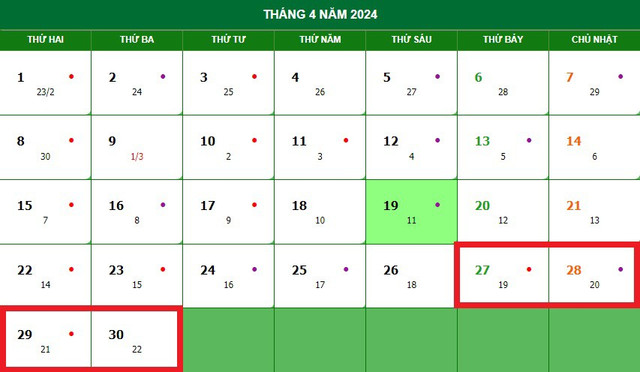 Người dân được nghỉ 5 ngày dịp lễ 30/4-1/5 năm 2024