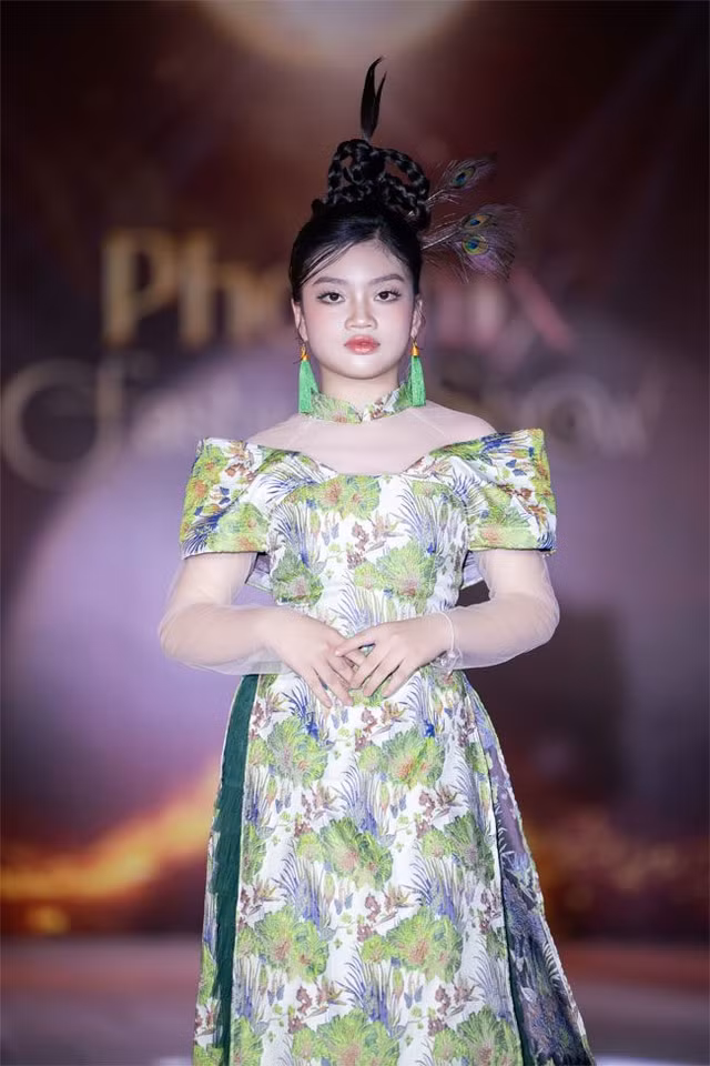 BST áo dài "The Green Era - Kỷ Nguyên Xanh" của NTK Tạ Ngọc Hoàng Lan: BST tôn vinh vẻ đẹp truyền thống, kết hợp giữa nét cổ điển và hiện đại với họa tiết hoa văn tinh xảo, sắc màu nổi bật, BST nhấn mạnh sự thay đổi tích cực hướng tới một tương lai xanh và bền vững.