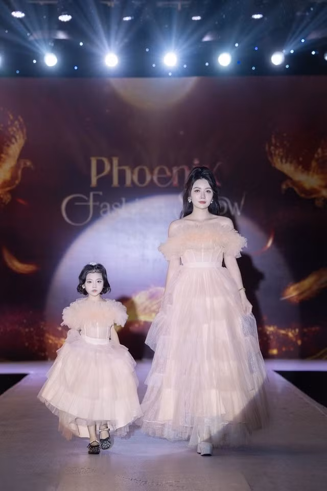 Á hậu Miss All Nations 201 Trúc Ny cùng ông xã doanh nhân và con gái làm vedette show diễn.