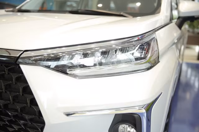 Ngược lại, Toyota Veloz Cross 2025 chọn hướng thiết kế mạnh mẽ và “dữ dằn” hơn. Lưới tản nhiệt hình lục giác lớn, họa tiết mắt cáo cùng viền crôm dày bản tạo cảm giác giống các mẫu SUV nhà Toyota như RAV4. Đèn pha LED mảnh, chia khoang và tích hợp công nghệ bật/tắt tự động, kết hợp cùng hốc gió lớn và đèn sương mù kiểu L ngược, mang lại gương mặt sắc sảo hơn.