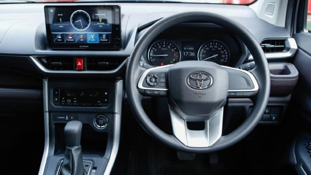 Toyota Veloz Cross 2024 lại hướng đến phong cách trẻ trung và cá tính hơn, nhờ phối màu nội thất 2 tông đen – trắng và chất liệu mềm mại ở nhiều vị trí. Vô-lăng 3 chấu thể thao, cụm đồng hồ kỹ thuật số 7 inch tùy chỉnh giao diện cùng hệ thống đèn nội thất LED giúp Veloz tạo được bản sắc riêng trong phân khúc.