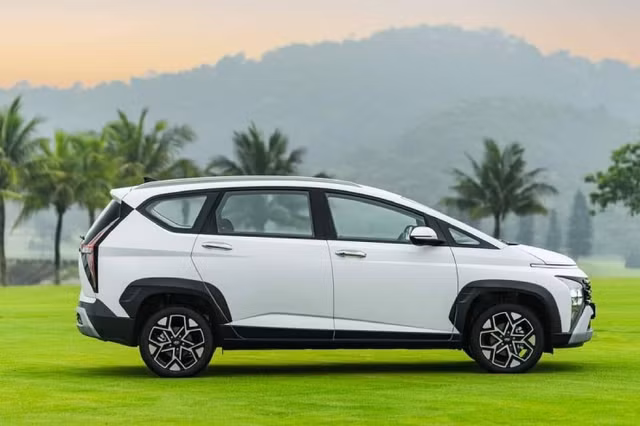 Tới phần thiết kế đuôi xe, mỗi xe MPV đều thể hiện một cá tính riêng. Stargazer X gây ấn tượng với cụm đèn hậu hình tam giác kết hợp đèn LED nối liền tạo thành chữ H, biểu tượng Hyundai cách điệu, giúp tăng độ nhận diện từ phía sau. Ngoài ra còn có đèn phanh LED trên cao và thiết kế kính hậu liền khối với đèn, tạo cảm giác liền mạch.