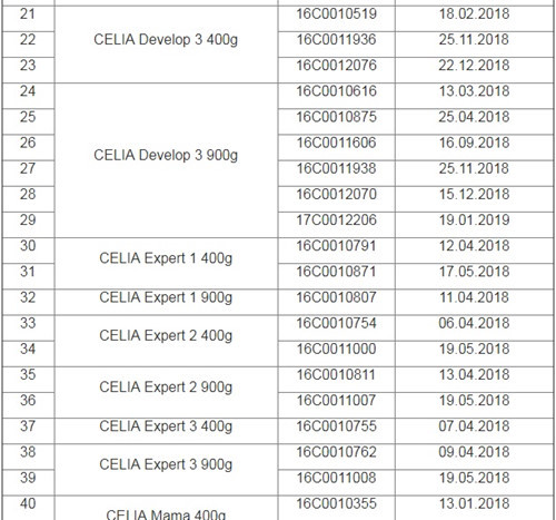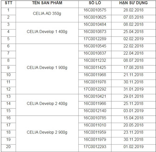 Như vậy, đến nay, đã có thêm 99 lô sản phẩm dinh dưỡng do Tập đoàn Lactalis của Pháp sản xuất vào danh mục các lô hàng có nguy cơ nhiễm khuẩn. Cụ thể đây là các lô hàng thuộc dòng sữa Celia dành cho cả mẹ và bé, có hạn sử dụng trong năm 2018, 2019. Ngoài ra còn có dòng sữa Picot, Cerealeas Cereline...