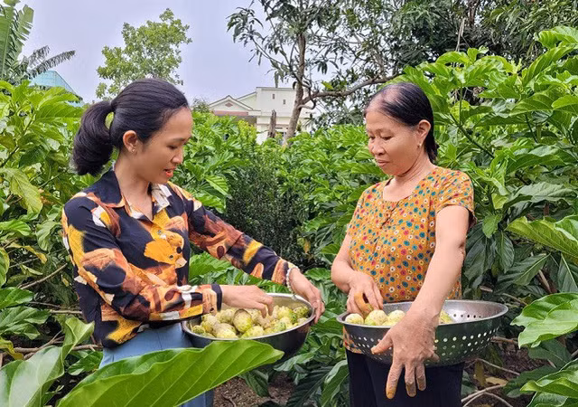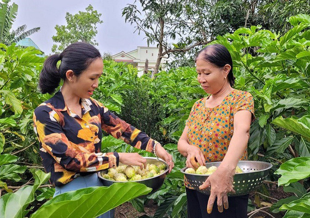 Chị Nhung đã đầu tư mua cây giống, phân bón đưa đến cho nông dân trồng, chăm sóc và bao tiêu sản phẩm