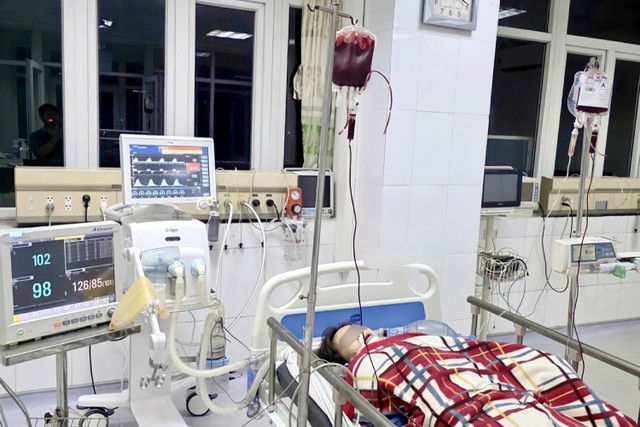 Bệnh nhân đau bụng dữ dội, ra máu nhiều, rơi vào tình trạng sốc mất máu nặng và được đưa đi cấp cứu.Ảnh: BV