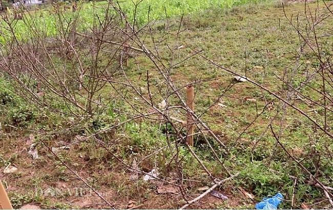 Những cành đào non, không nụ bị chặt một cách bừa bãi trước Tết giờ nằm ngổn ngang ở những bãi đất trống.