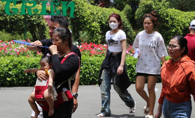 Càng về trưa, thời tiết TP.HCM khá oi bức nhưng người lớn, trẻ nhỏ vẫn đổ về các khu vui chơi ở Thảo Cầm Viên để vui chơi.
