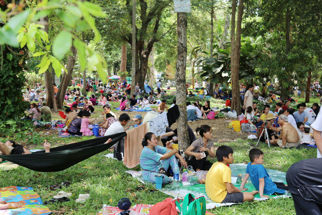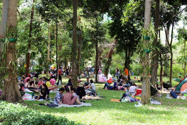 Thời tiết ở TP.HCM những ngày nắng nóng gay gắt, người dân đến Thảo Cầm Viên vui chơi, dựng lều, cắm trại nhân dịp nghỉ lễ.