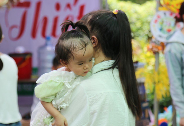 Đến giữa trưa, thời tiết nóng bức khiến nhiều trẻ nhỏ và cả người lớn cũng bơ phờ.
