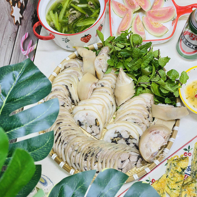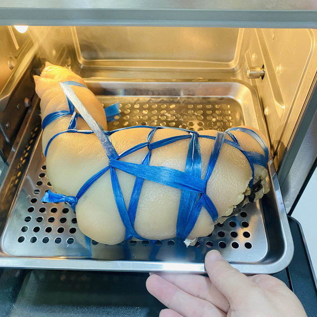 Có thể luộc hoặc hấp chín phần chân giò đã nhồi.