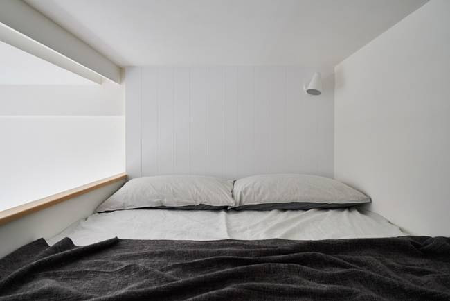 Mặc dù, diện tích phòng tắm giảm một chút so với kích thước nhưng vị trí mới có trang bị hệ thống thông gió tốt hơn và hút ánh sáng mặt trời. Kiến trúc sư Wang cho hay, các không gian trong căn hộ nằm cạnh nhau nhưng vẫn tách biệt. Hình ảnh chụp nơi ngủ của chủ nhân.