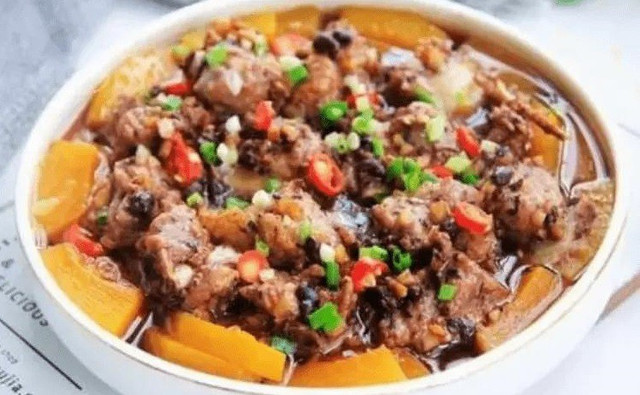 Bước 2: Bí ngô gọt vỏ, bỏ hạt, rửa sạch, cắt thành từng miếng nhỏ, cho vào đĩa, đặt sườn đã ướp lên bí ngô rồi rưới phần nước cốt còn lại vào. Cho nước vào nồi đun sôi, cho sườn bí đỏ vào hấp khoảng 40 phút rồi rắc thêm hành lá để trang trí và thưởng thức.