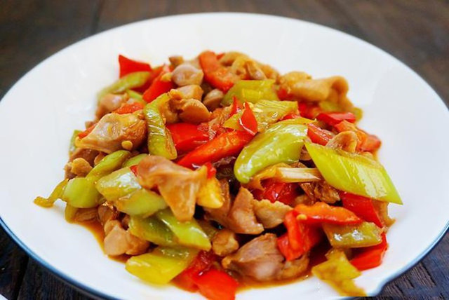 Phi thơm hành, gừng, tỏi, cho mề gà vào xào chín, thêm gia vị, đảo khoảng 2 phút thì tắt bếp.