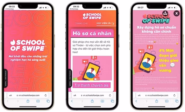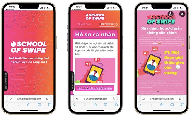 Ứng dụng hẹn hò Tinder vừa ra mắt School of Swipe. Đây là hướng dẫn hẹn hò trực tuyến độc quyền dành cho khu vực Đông Nam Á. School of Swipe được ra mắt lần đầu tiên tại Singapore vào năm 2022.