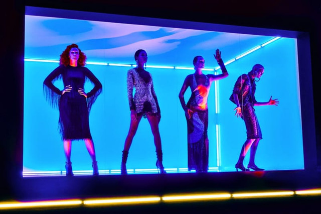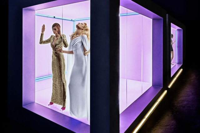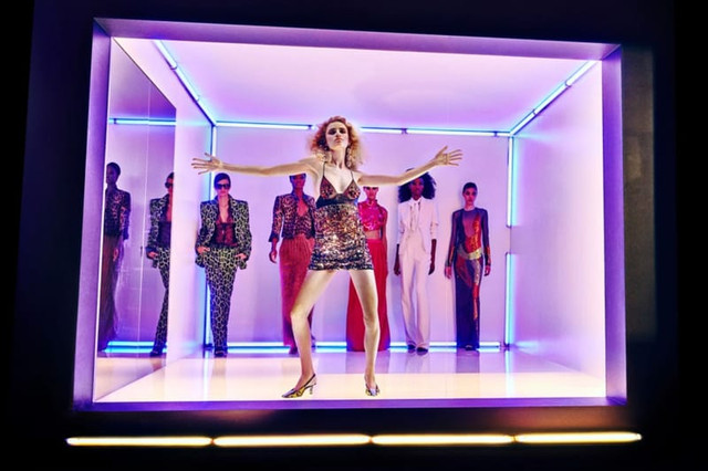 Trong số đó, Kloss đeo chiếc gương vỡ của giám đốc sáng tạo từ mùa xuân năm 2014 và Valletta xuất hiện trong bộ bodycon color blocking của Ford từ mùa xuân năm 2016. Chiếc áo choàng cape màu trắng của nhà thiết kế mà Gwyneth Paltrow nổi tiếng đã mặc tới lễ trao giải Oscar 2012 xuất hiện trở lại cho thời hiện đại, cũng như chiếc váy ngắn bằng vải sequin năm 2014 mà Beyoncé đã diện trong Chuyến lưu diễn vòng quanh thế giới của bà Carter. Tấm dán ngực màu hoa vân anh của Ford, được Zendaya gây sốt tại Lễ trao giải Critics Choice Awards 2020, cũng xuất hiện một lần nữa, bên cạnh bộ vest nhung đặc trưng, gợi nhớ đến thời gian của nhà thiết kế tại Gucci .
