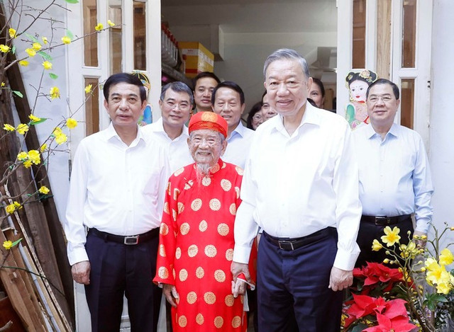 Tổng Bí thư Tô Lâm đến thăm, chúc Tết nhà nghiên cứu Nguyễn Đình Tư vào sáng 9/2.