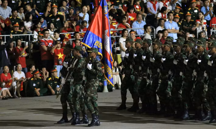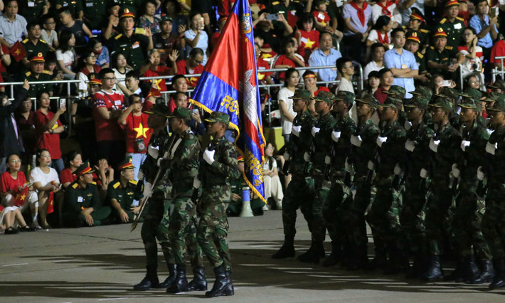 Khối quân nhân Nga, Lào, Campuchia tổng hợp luyện diễu binh, diễu hành lần 2 tại Quảng trường Ba Đình, Hà Nội.