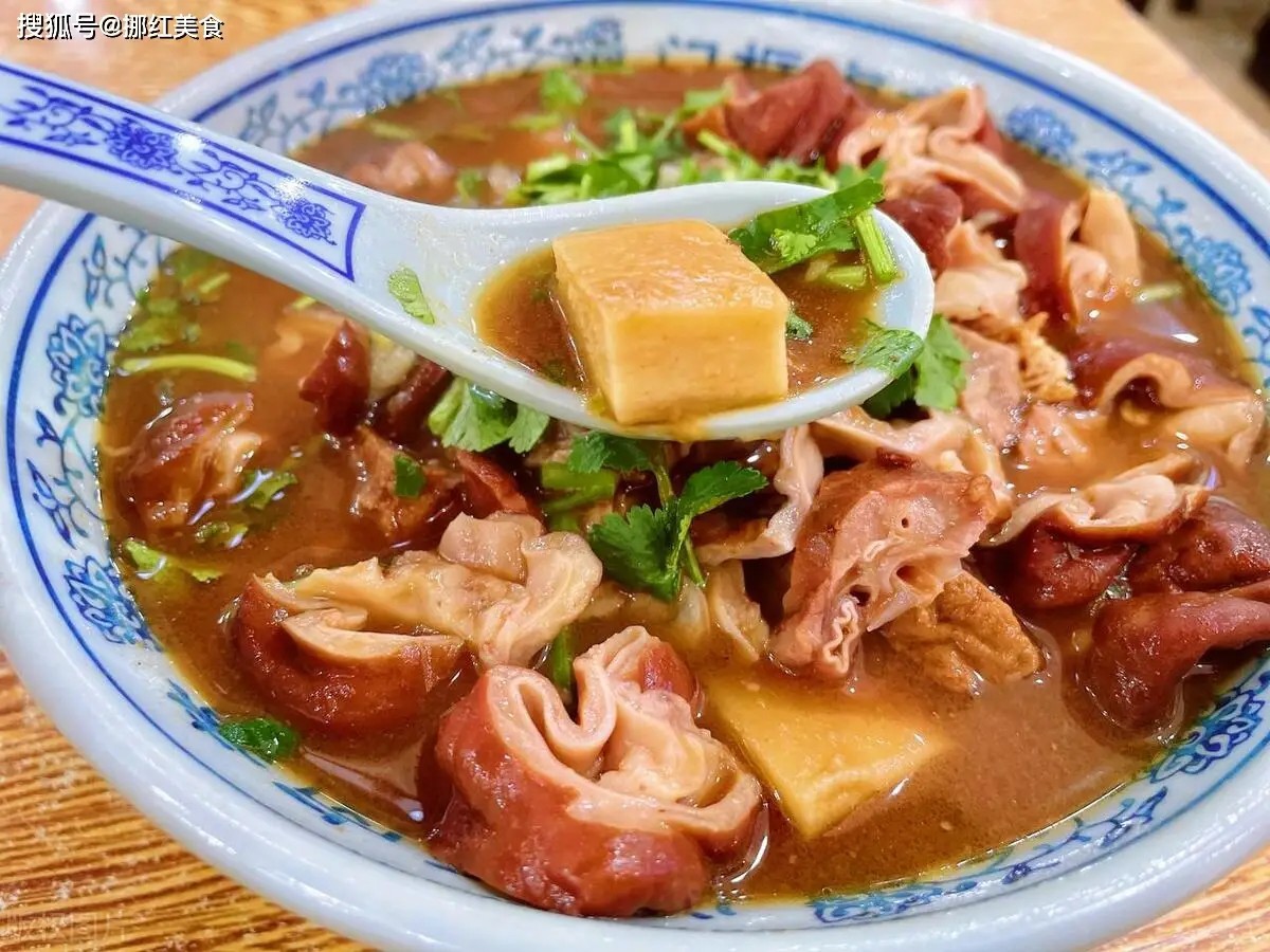 Món ăn đường phố mang đậm hương vị nội tạng này đang thu hút sự yêu thích của người dân Bắc Kinh. Nước dùng được chế biến từ ruột, phổi, đậu phụ, bánh chiên, mang đến một trải nghiệm ẩm thực đậm chất cổ xưa. Khi cắn một miếng bánh chiên giòn và húp thìa nước dùng sánh đậm, thực khách sẽ cảm nhận ngay được “hồn” của ẩm thực Bắc Kinh.