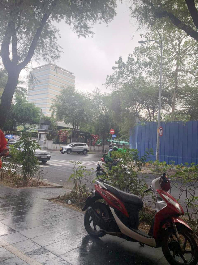 Khu vực quận 1 cũng xuất hiện mưa rải rác và kéo dài khoảng 5 phút. So với các khu vực khác thì quận trung tâm có mưa nặng hạt hơn.