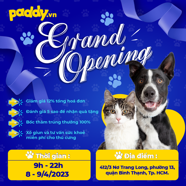 Tháng 04/2023, Paddy chính thức khai trương chi nhánh mới ở địa chỉ 412/3 Nơ Trang Long, phường 13, quận Bình Thạnh, TP. HCM với vô vàn ưu đãi hấp dẫn đáng mong chờ.