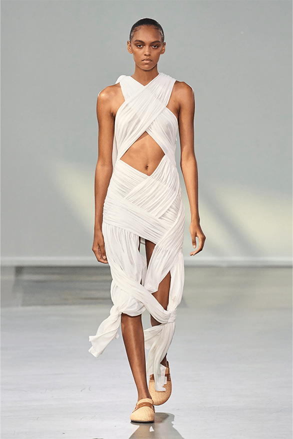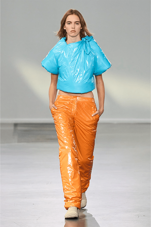 Ở những nơi khác, túi nhựa đã được sử dụng trên nhiều trang phục dành cho phụ nữ, đặc biệt là chiếc váy cá Xuân/Hè 2023 của Anderson. Chúng được nhuộm màu cơ bản và thắt nút ở vai để tạo hiệu ứng phồng lên. Chiếc quần nhăn lại khi chuyển động và xòe xuống trong khi những hình tròn kéo vào những chiếc váy màu sắc nổi bật ở phần eo, hoàn thiện bộ sưu tập với những chiếc váy lưới lấp lánh và những chiếc váy xoắn phù hợp dành cho mùa hè.