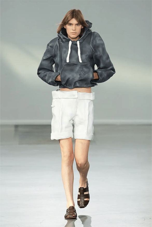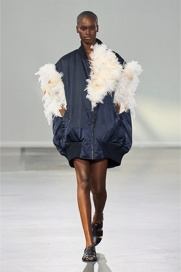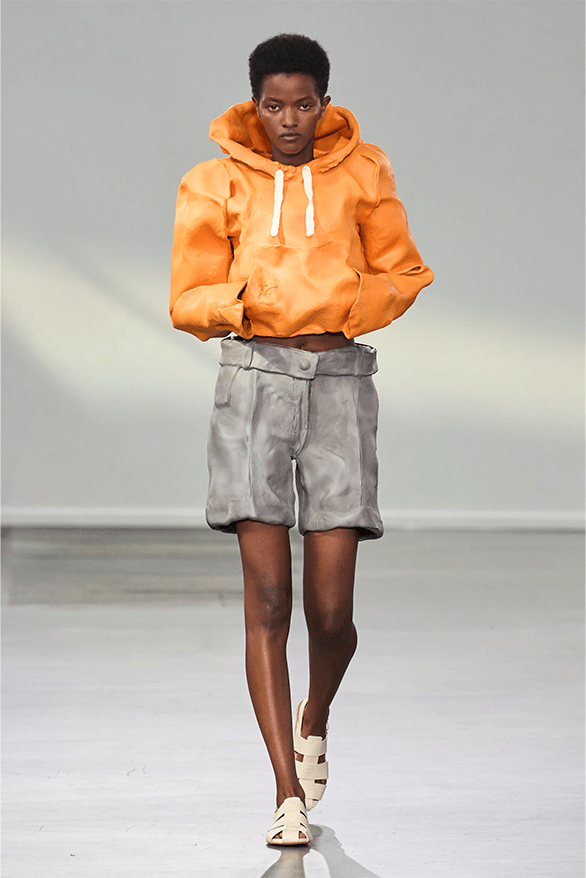 Nguồn cảm hứng theo mùa của Anderson bắt đầu bằng một lời mời tham gia chương trình phức tạp, tặng những người tham dự một khối đất sét có màu để chơi. Chất liệu ngậm nước sau đó được vận chuyển đến sàn diễn, đúc thành áo phông cắt ngắn và quần short denim gấp gọn. Áo khoác mô tô có mũ trùm đầu có dây rút cắt dày để mang lại trải nghiệm bảo vệ, trong khi những chiếc váy lông vũ bay ngược gió trong nhà trên áo khoác ngoài có đệm. Những hạt cườm lấp lánh được dệt sang trọng, tạo nên những chiếc váy có túi như đọng lại theo thời gian. Những chiếc áo khoác bomber cực kỳ bồng bềnh di chuyển về nửa dưới, tạo thành chiếc quần ống loe với sức hút hài hước.