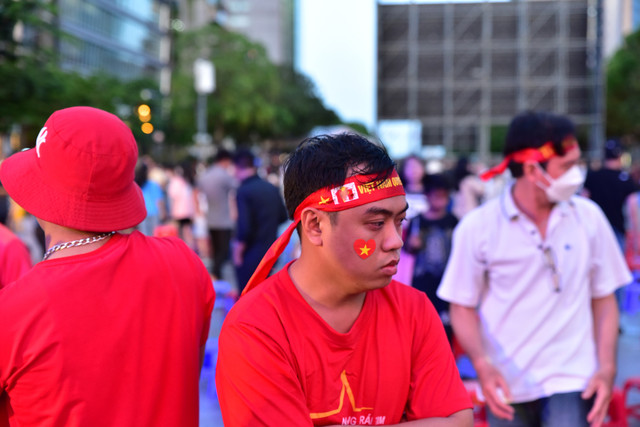CĐV đang rất vui mừng, không khí cổ vũ vô cùng sôi động trên phố đi bộ. Nhiều người nghĩ về 2 hiệp phụ đội tuyển Việt Nam được đá hơn người sẽ có cơ hội giành chiến thắng.