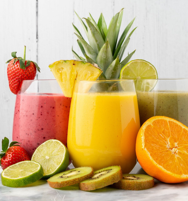 Hầu hết các loại nước trái cây đóng chai đều chứa nhiều đường và ít trái cây và rau củ, vì vậy hãy trang bị máy xay sinh tố để có lựa chọn tốt nhất. Những đồ uống này không chỉ ngon và sảng khoái mà còn giúp cải thiện sức khỏe làn da rất tốt. Hầu hết các loại trái cây như táo và nho đều chứa chất chống oxy hóa giúp tái tạo làn da. Các loại trái cây có múi như cam có chứa Vitamin C giúp chống lại hoạt động của gốc tự do trên da. Đối với các loại rau, dưa chuột và rau bina đều có thể mang lại điều kỳ diệu cho làn da của bạn.