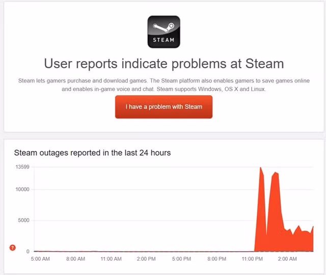 Vào đêm Giáng sinh, Steam gặp sự cố gián đoạn dịch vụ, tạm thời ngừng hoạt động và khiến nhiều người dùng không thể truy cập vào cửa hàng. Mặc dù nền tảng thông báo đã khôi phục một sau khoảng 1 giờ, nhưng các báo cáo cho thấy vấn đề vẫn tiếp diễn đối với một lượng lớn người dùng ngay cả sau khi dịch vụ được khôi phục một phần.