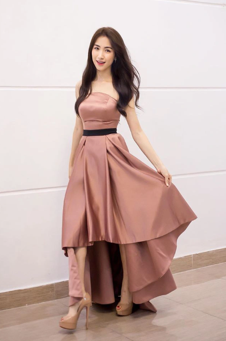 Khi tham gia sự kiện, Hòa Minzy khéo kết hợp những trang phục váy quét đất với giày đế “khủng”.