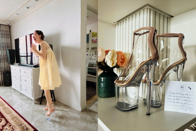 Giọng ca “Thị Mầu” hào hứng khoe món quà giày “cà kheo” 25 cm được Hoàng Thùy tặng làm quà sinh nhật. Đây là thiết kế tạo xu hướng ở nước ngoài với phần đế đúc nhựa.